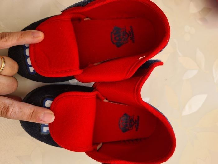 Chaussons bon état. Porté uniquement à l'intérieur. Traces de pâtes à modeler sur le semelle.