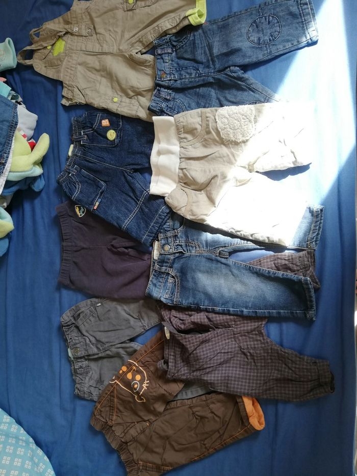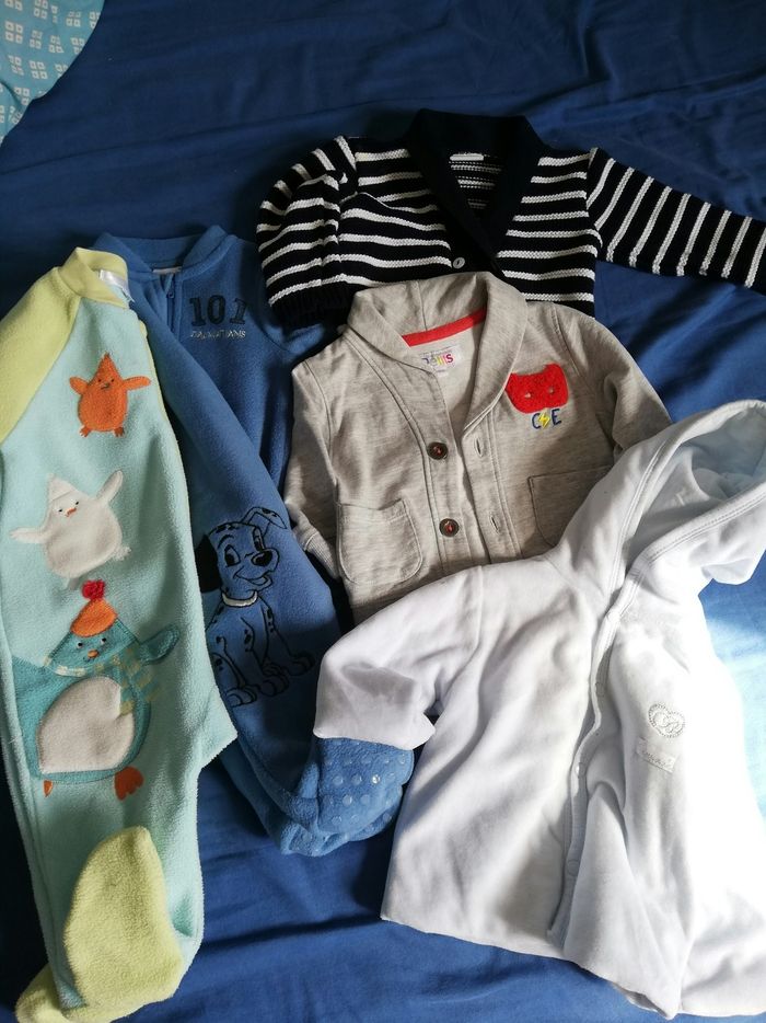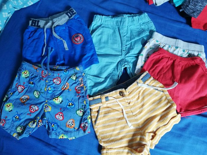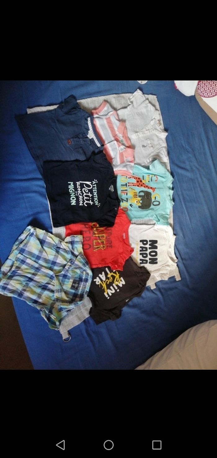 Lot de 45 pièces comprenant: 2 chemises manches longues 2 pulls 2 pyjamas 3 gilets/veste 8 tee shirts et 1 chemise manches courtes 6 shorts 7 hauts manches longues 9 pantalons 5 combi-shot que je n'ai pas pu mettre en photo. Divers marques comme TAO, Okaidi, Disney, Orchestra