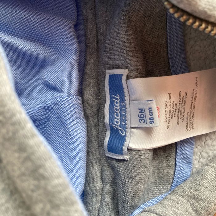 Sweat à capuche gris Jacadi Doublure capuche Oxford bleu ciel Taille 36 mois Très bon état