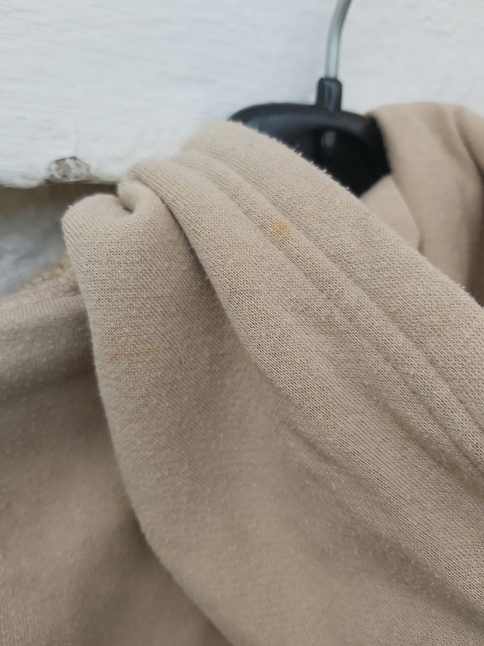 Gilet à capuche En bon état, matière un peu boulochée dû aux lavages en machine et petites tâches discrètes sur la capuche voir photos