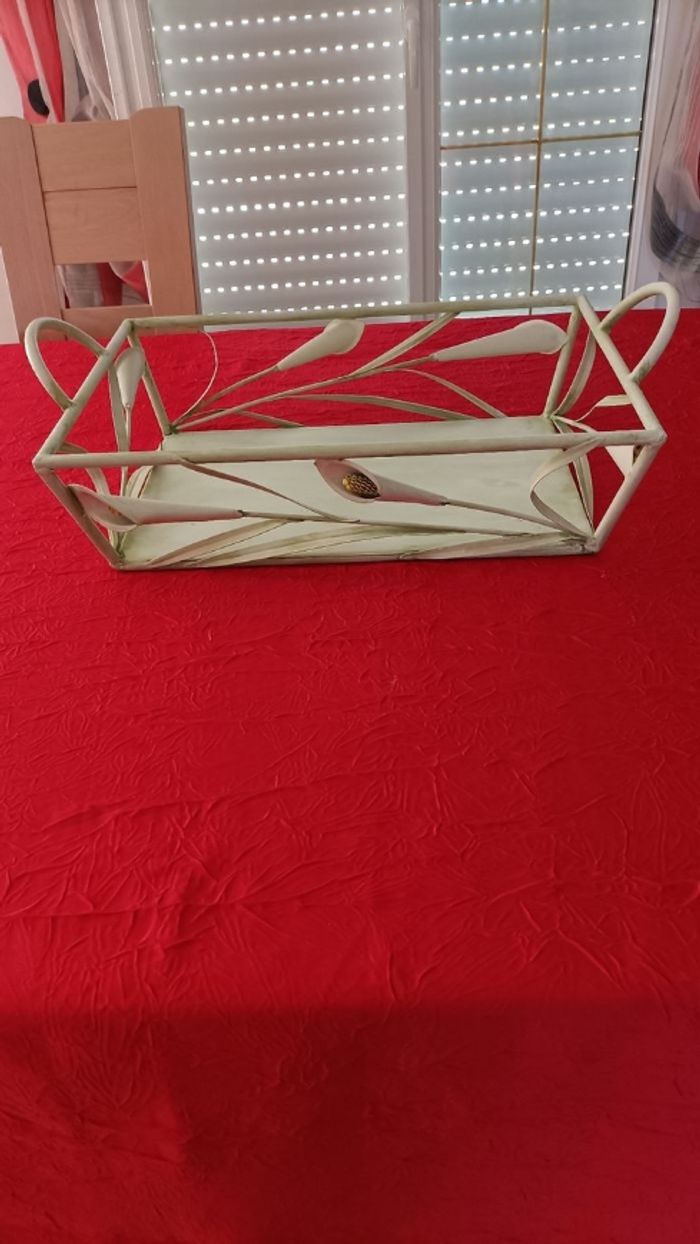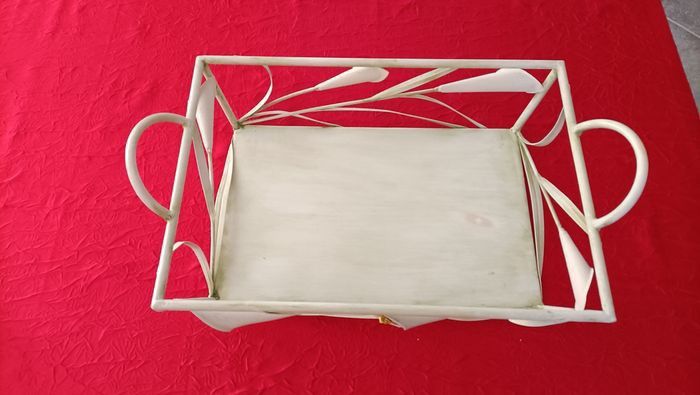 Je vends ce joli plateau en fer métal d' un vert très doux qui peut être peint de votre choix, pensé à vos fêtes de fin d'année peut servir de différentes façons soit pour garnir où en déco voir photos