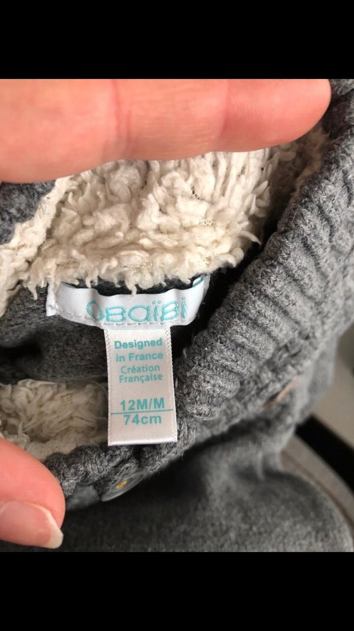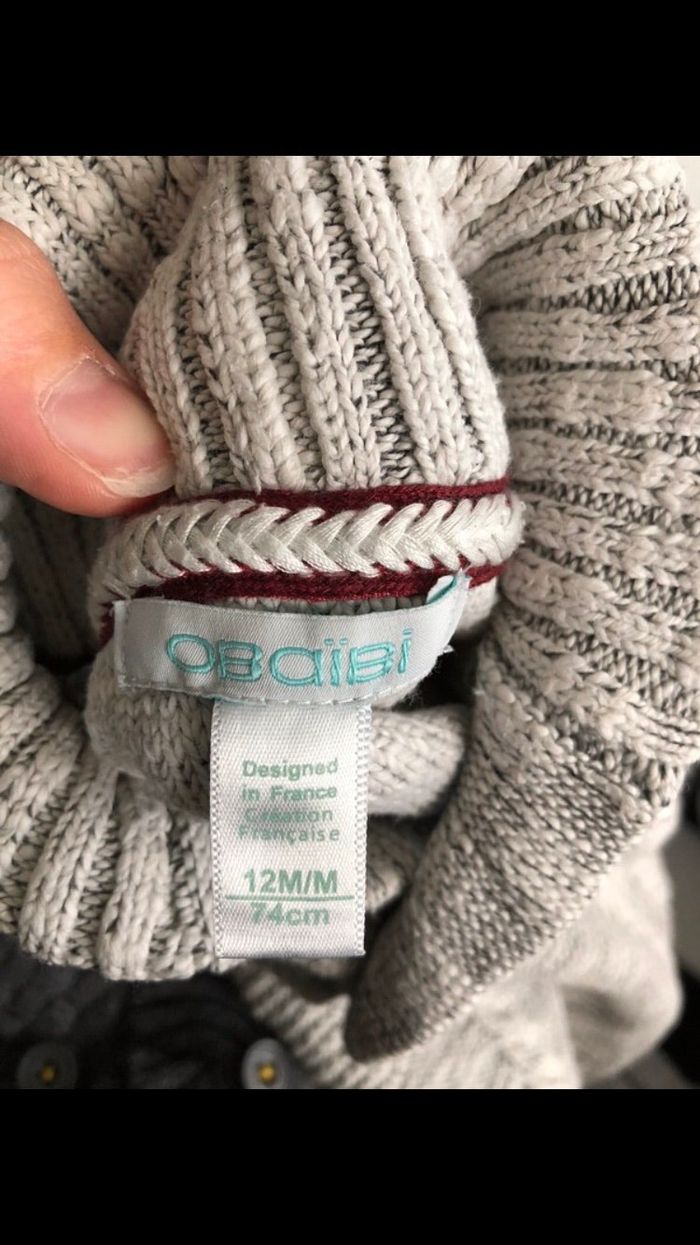 pull gris hiver garcon obaibi en taille 12 mois en bon etat