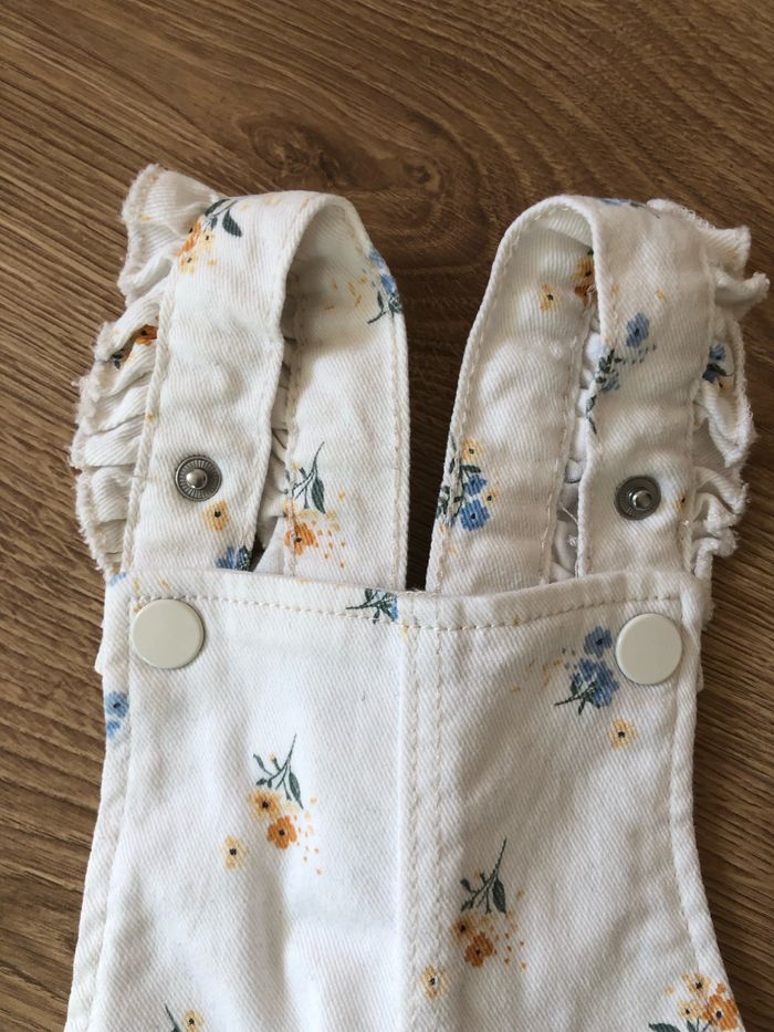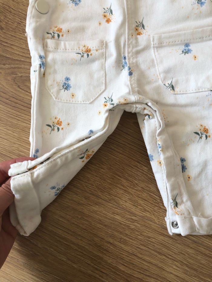 Superbe salopette en jean avec deux niveaux de pression au niveau de la taille des épaules et pression à l’entre jambe pour plus de facilité