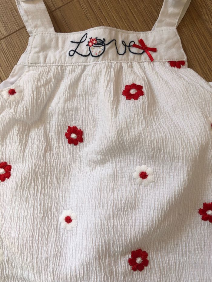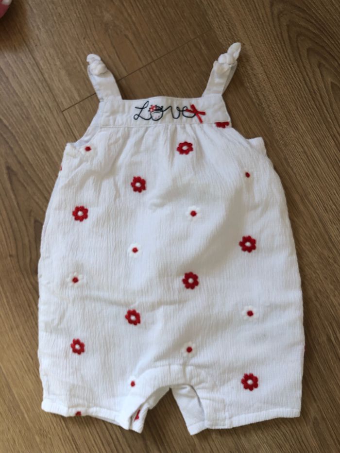 Neuve et jamais portée, juste lavé une fois Barboteuse blanche a fleurs brodées Pressions à l’entre jambe Taille 3 mois -60 cm