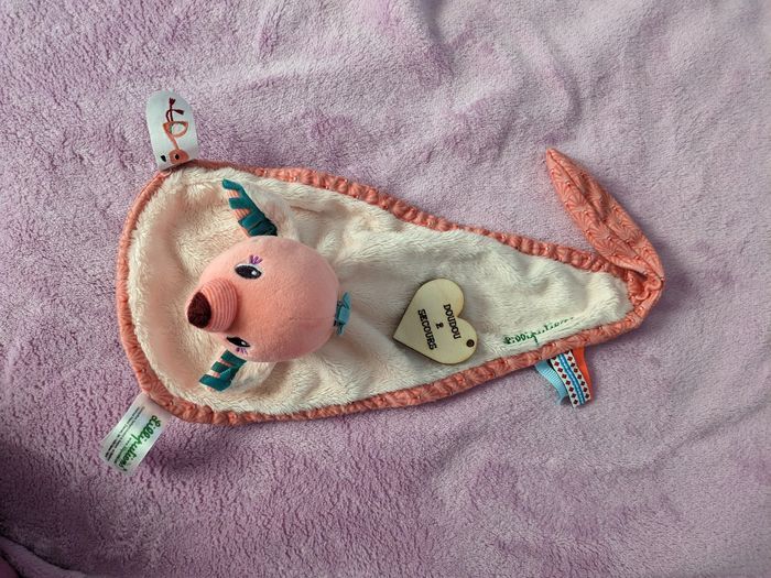 Ce joli doudou plat flamant rose rose de la marque LILLIPUTIENS sera le compagnon idéal de bébé pour passer des nuits paisibles. Facile à attraper, ce doudou plat flamant rose tout doux l'accompagnera dès sa naissance. Doudou de 25 cm Caractéristiques :Doudou rose saumon Conseils d'entretien : Lavable en machine à 30°c
