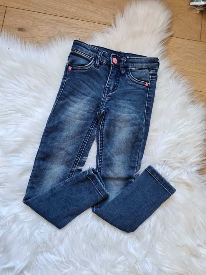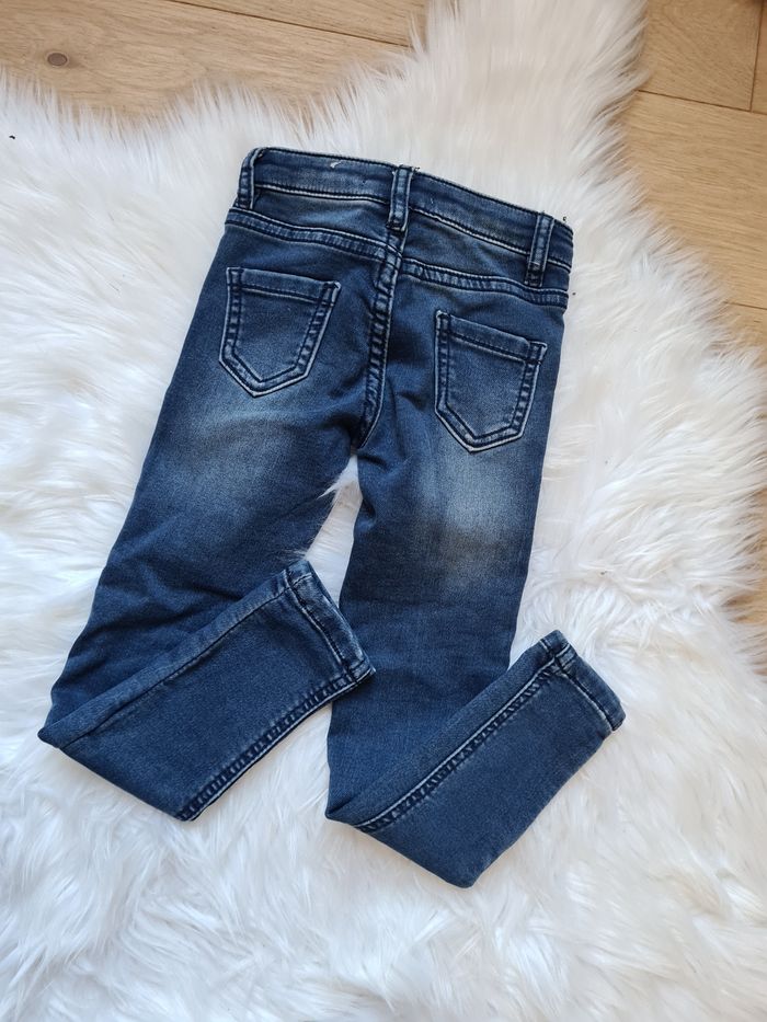Jeans bleu Ils ont aucune étiquette j'hésite être le 3 et le 4ans Mais ils sont en très bonne état, comme neufs