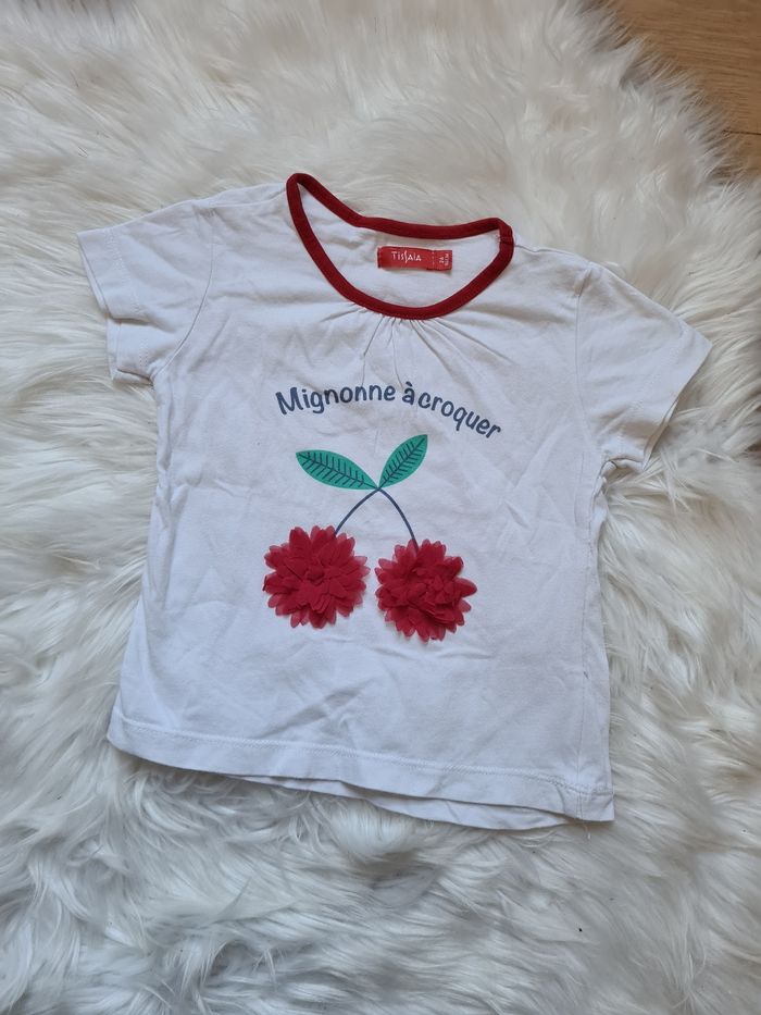 Tee-shirt manches courtes blanc avec des cerises en 3d Mignonne à craquer Tissaia 2ans