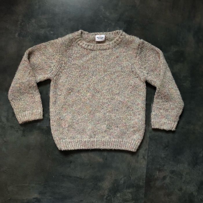 Très joli pull Grège chiné multicolore pastel Encolure ronde 58% acrylique 30% polyester 12% polyamide Taille 5 ans 110 cm Tape à l’œil