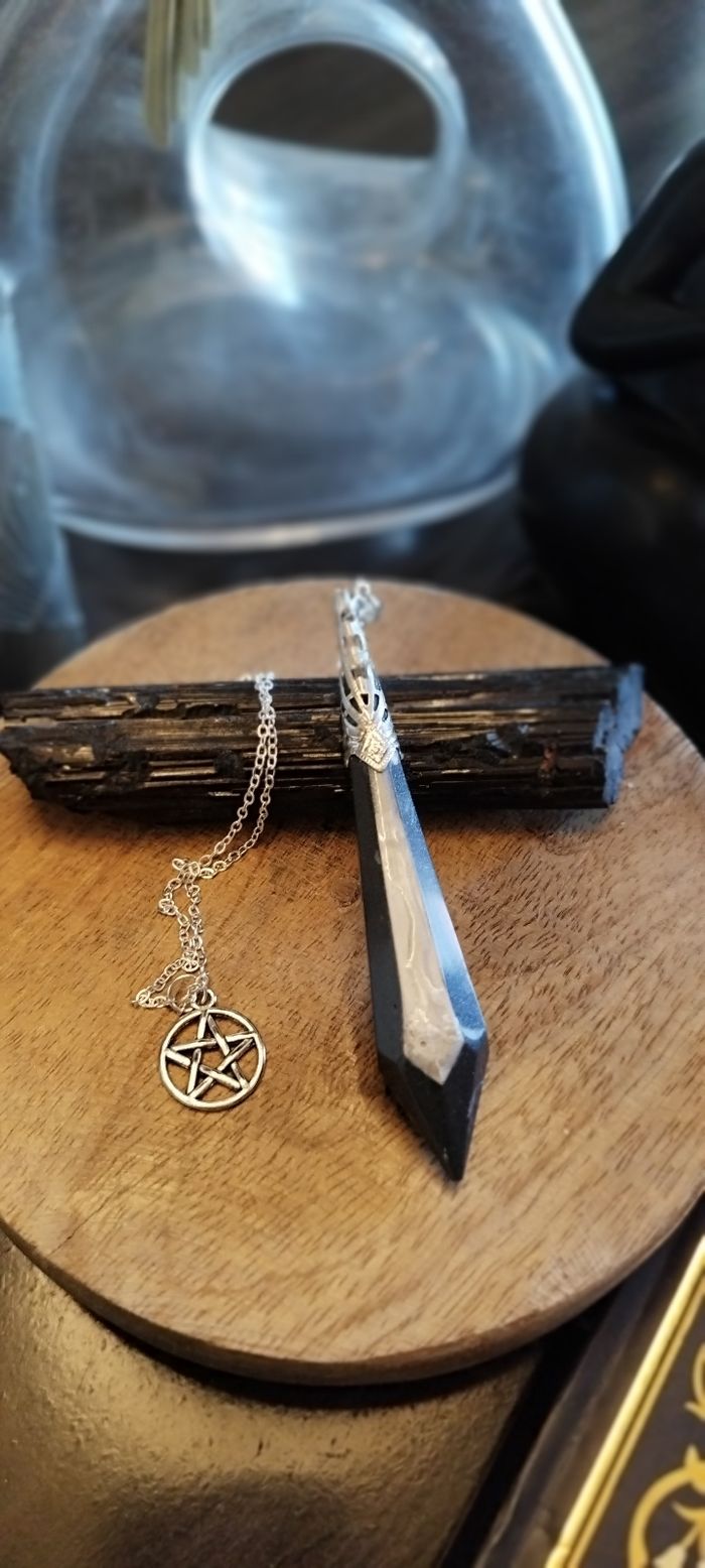 Pendule noir et blanc Avec pentacle de sorcière