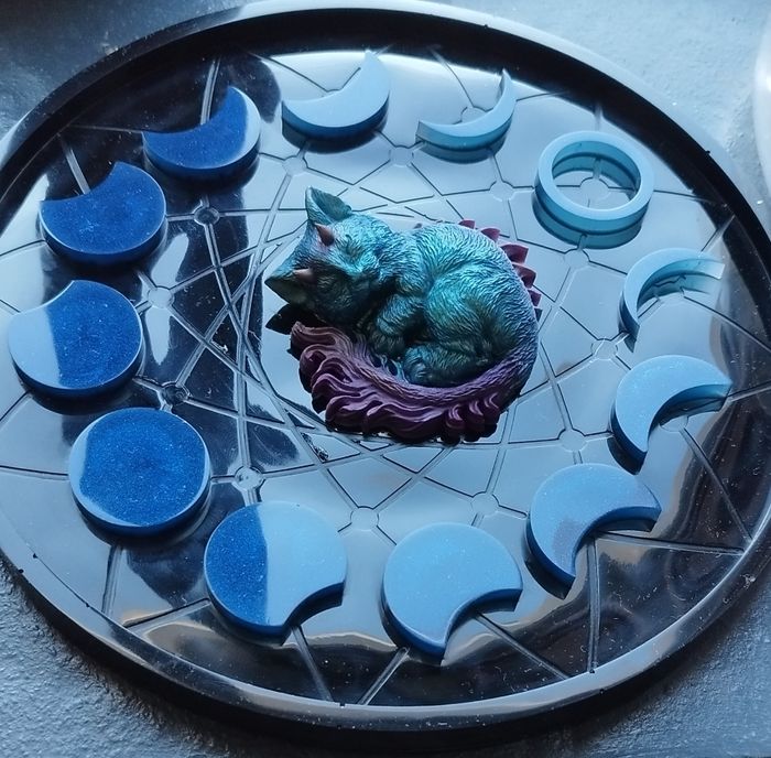 Plateau lunaire pour décoration ou Autel (Chat-poisson vendu séparément ) Plateau déclinant toutes les phases lunaires
