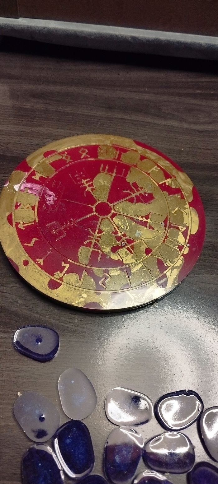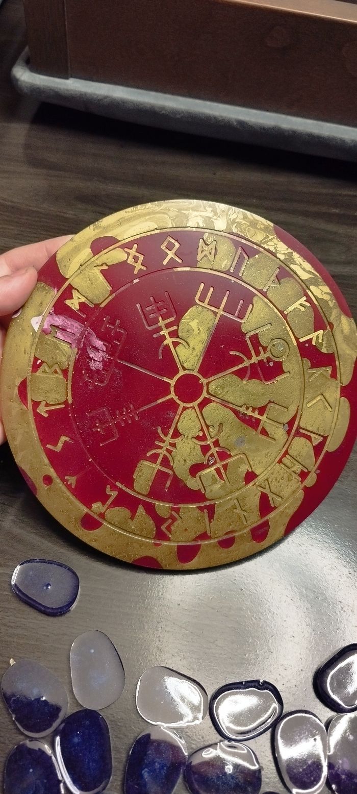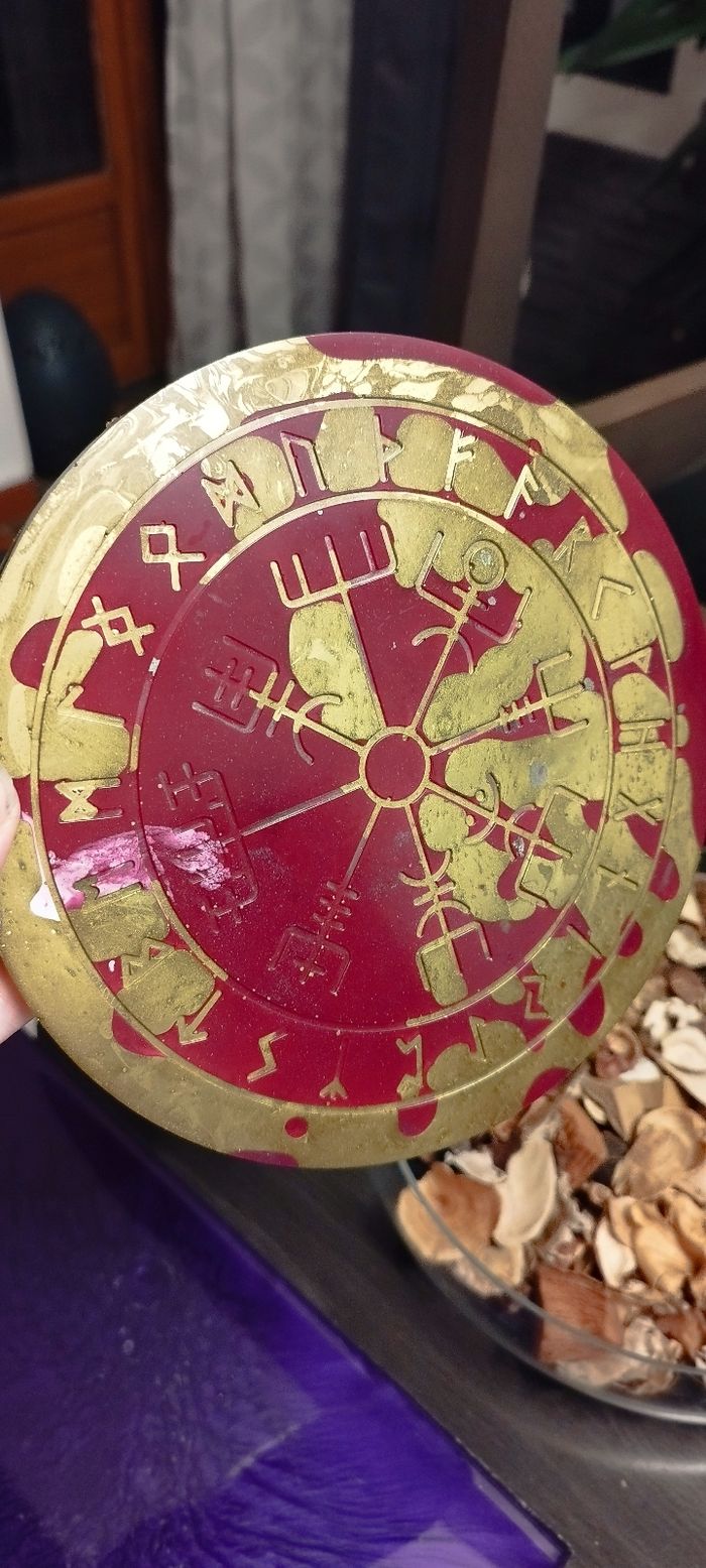 Grand plateau runique or et rouge Avec symboles viking et wicca