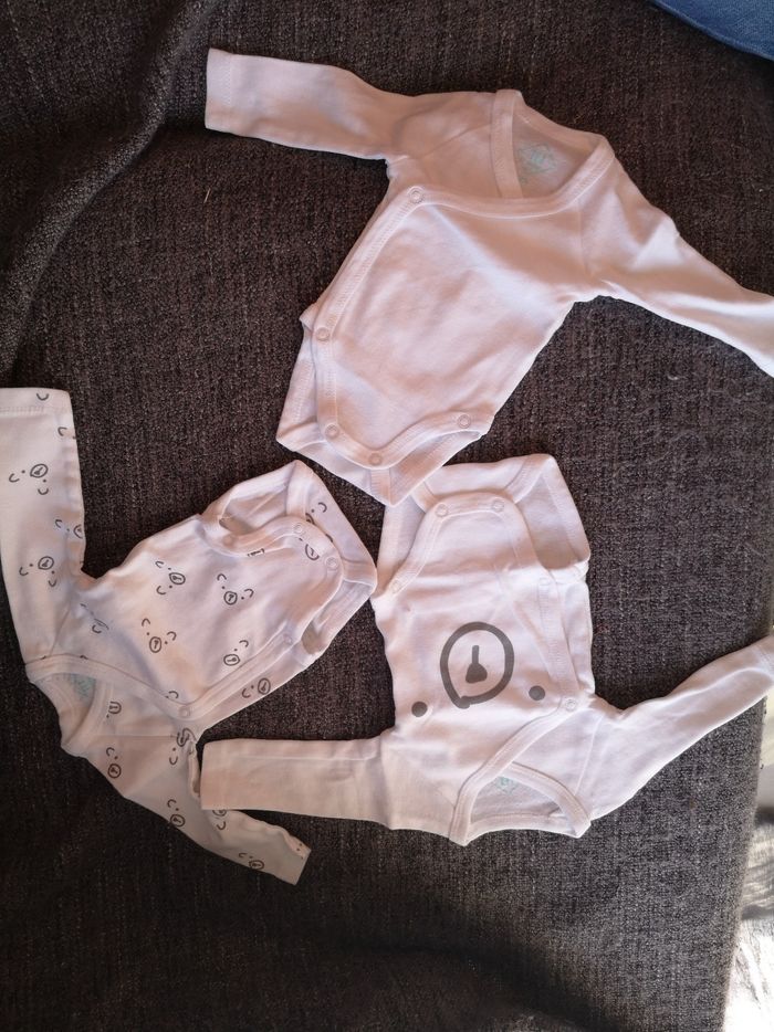 Lot 3 bodys Tex porté 1 fois Taille 0 mois. Encore vendu 7 euros en magasin. 5 euros le lot.