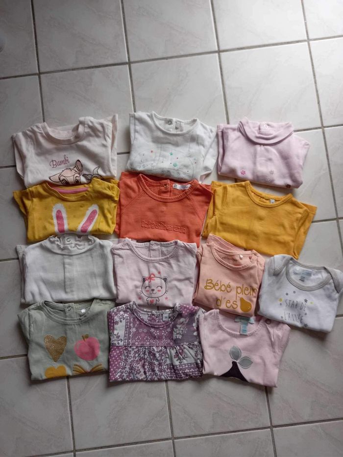 23 tee shirt à manches longues dans un excellent état. Taille : 3 mois. L’unité : 2€ ou possibilité de faire un lot.