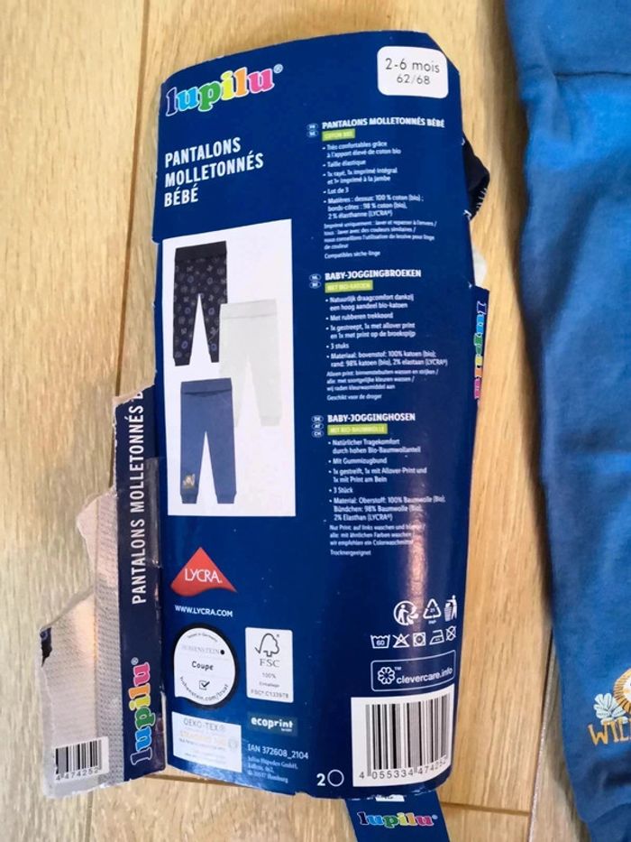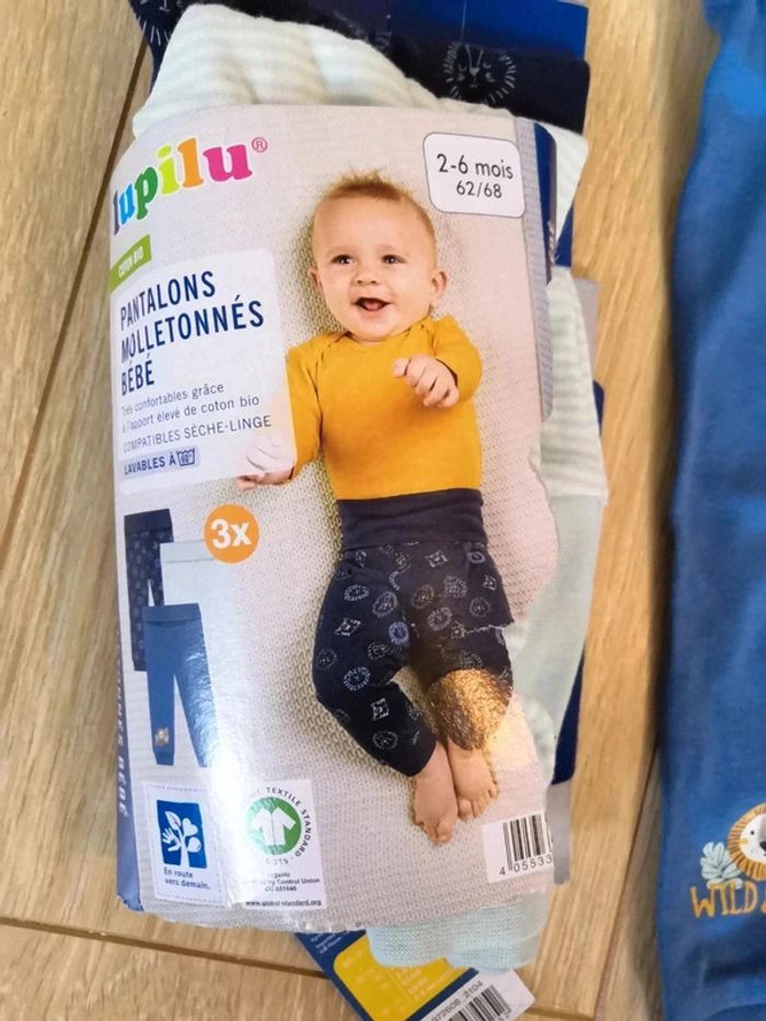 🌼Détails : Lot 3 Pantalons / leggings Molletonnés rayé / uni /motif 🌼Marque : Lupilu 🌼Couleur : bleu / marine / gris / blanc 🌼Taille : 2-6 mois / 62 - 68 cm 🇬🇧English 🌼Details: Fleece trousers / leggings striped / plain / pattern 🌼Brand: Lupilu 🌼Color: blue / navy / gray / white 🌼Size: 2-6 months / 62 - 68 cm