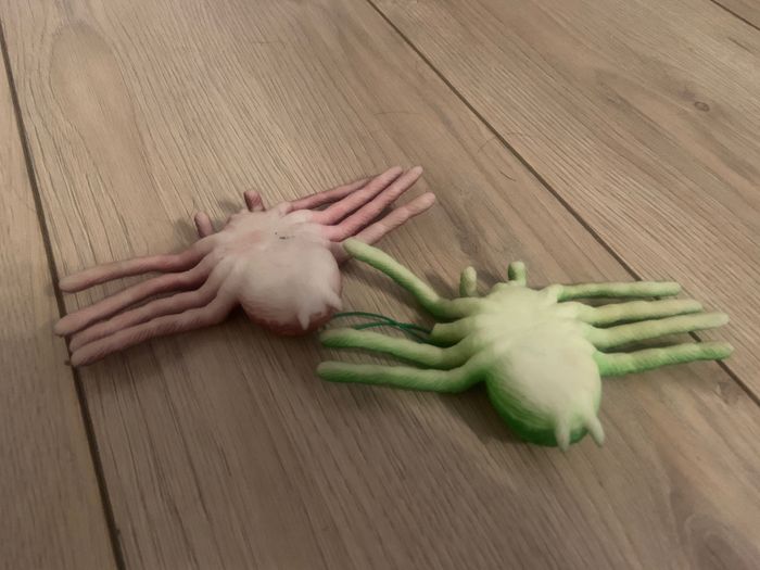 2 araignées en plastique. Très bon état sauf une patte manquante sur l’une.