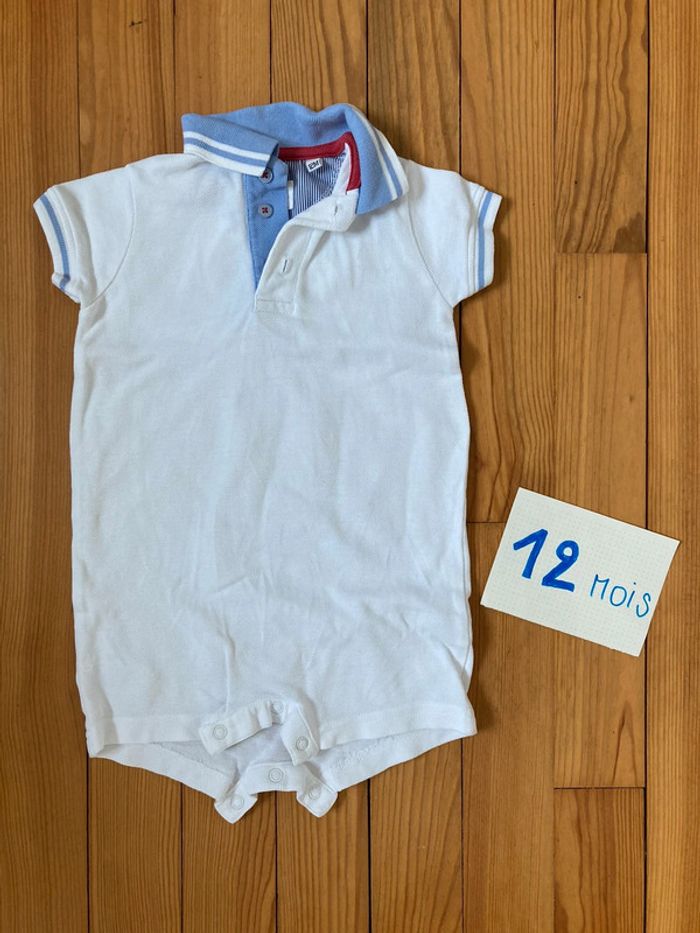 Grenouillère bébé 1 an mais taille plutôt petit Style polo tennis en piqué de coton Super confortable pour l’été Réductions sur les lots activées ! Maison non fumeur et sans animaux #mariemaybegarçon12mois