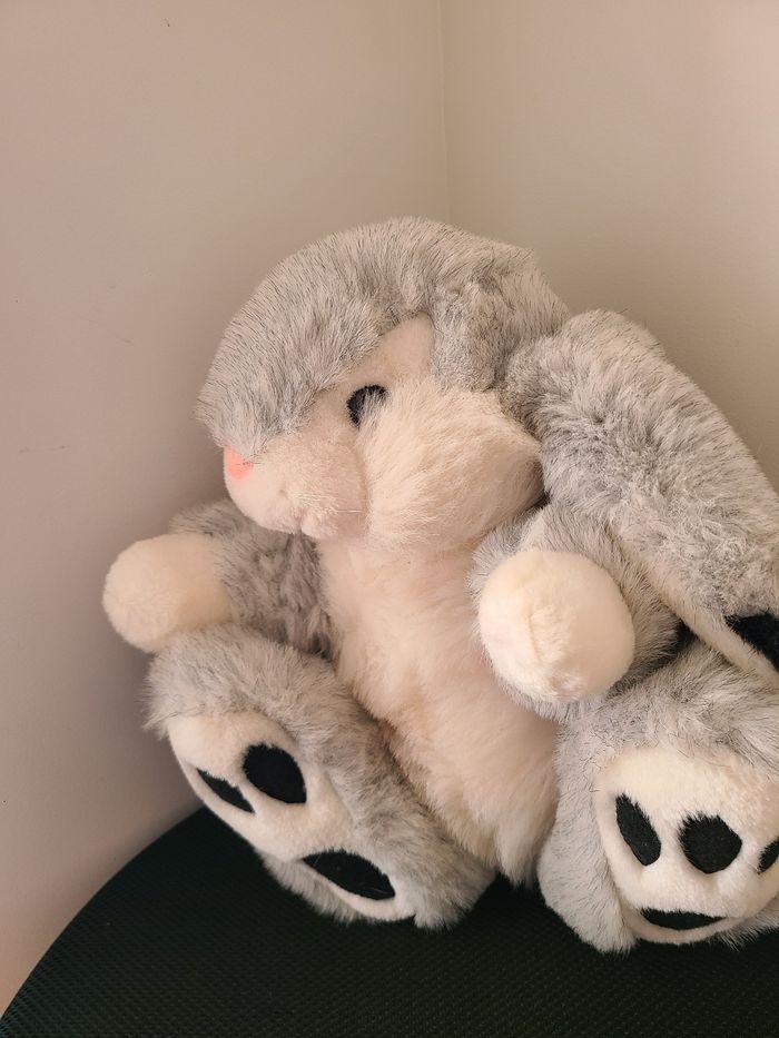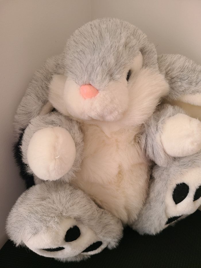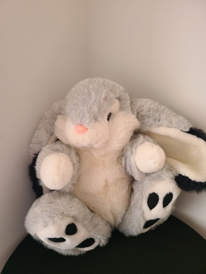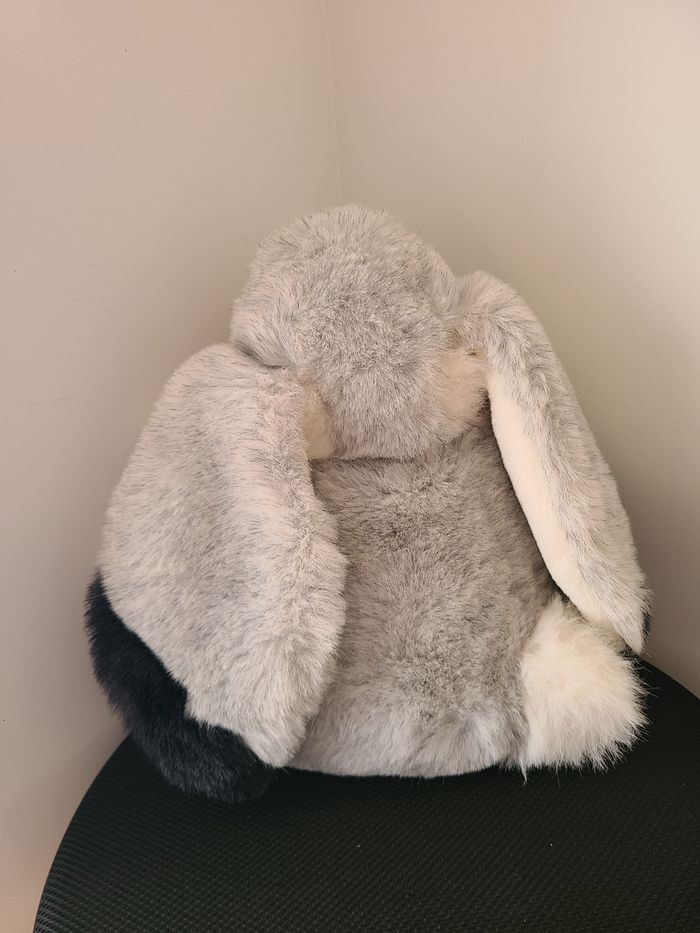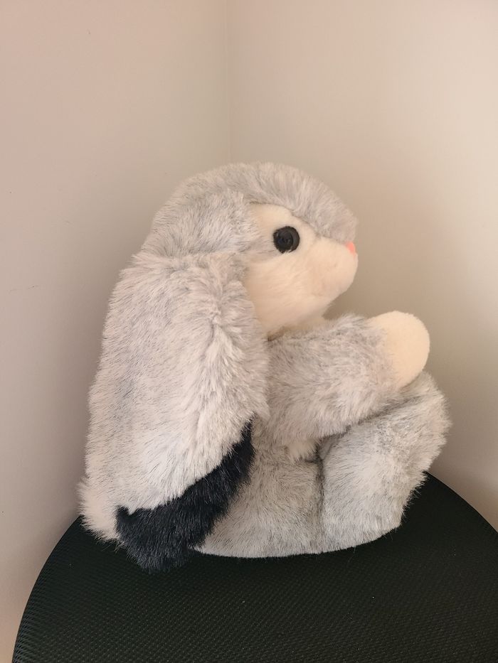 Peluche lapin chrisha Lapin gris bout noir oreilles 1988