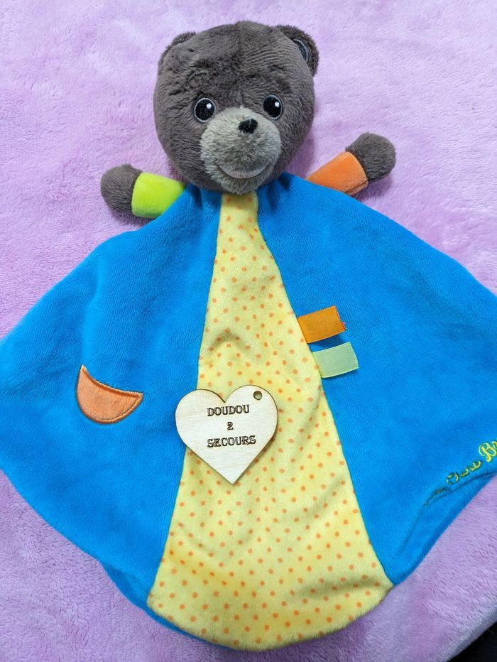 Ce joli doudou plat ours bleu de la marque JEMINI sera le compagnon idéal de bébé pour passer des nuits paisibles. Facile à attraper, ce doudou plat ours tout doux l'accompagnera dès sa naissance. Doudou de22 cm Caractéristiques :Ours / Doudou plat / Bleu / Petit Ours Brun Conseils d'entretien :Lavable en machine à 30°C Marque : Jemini
