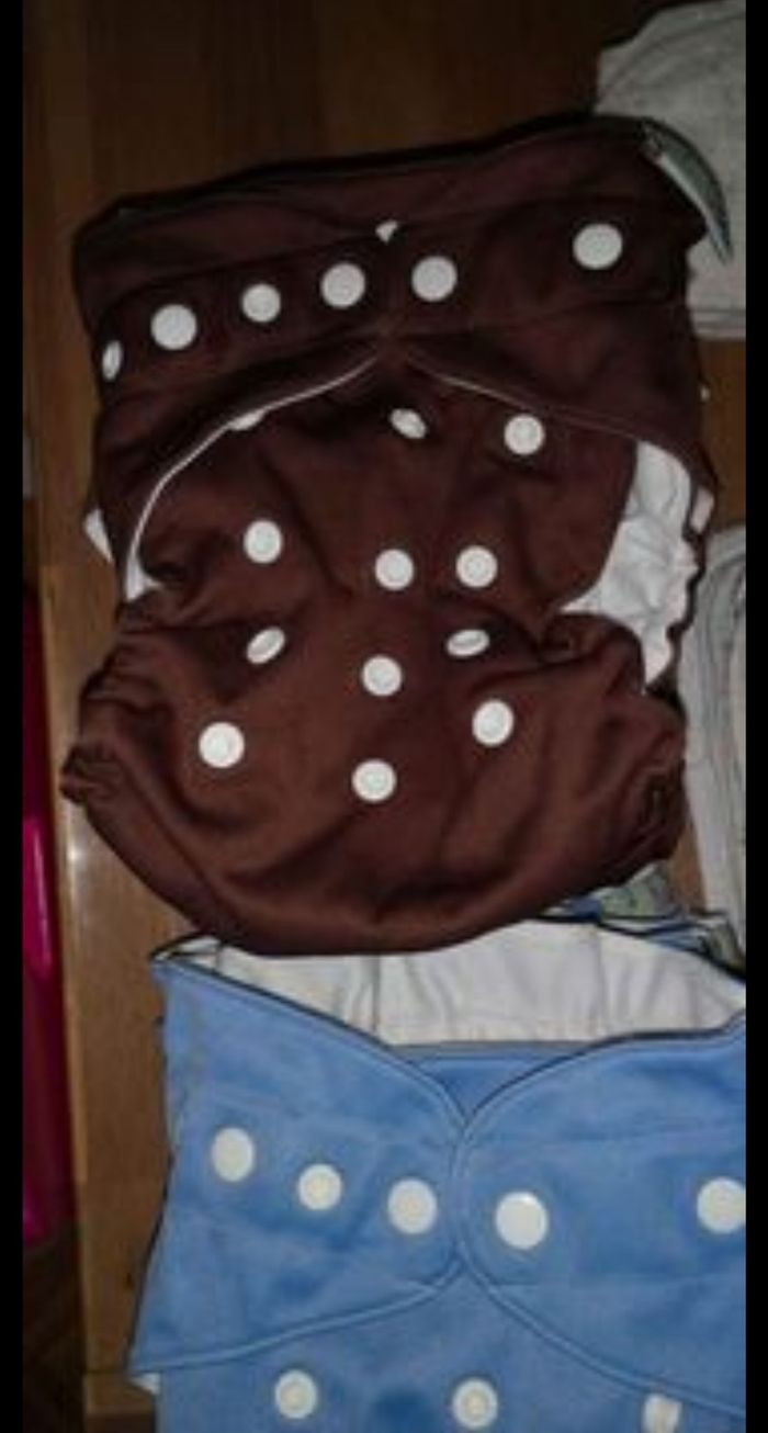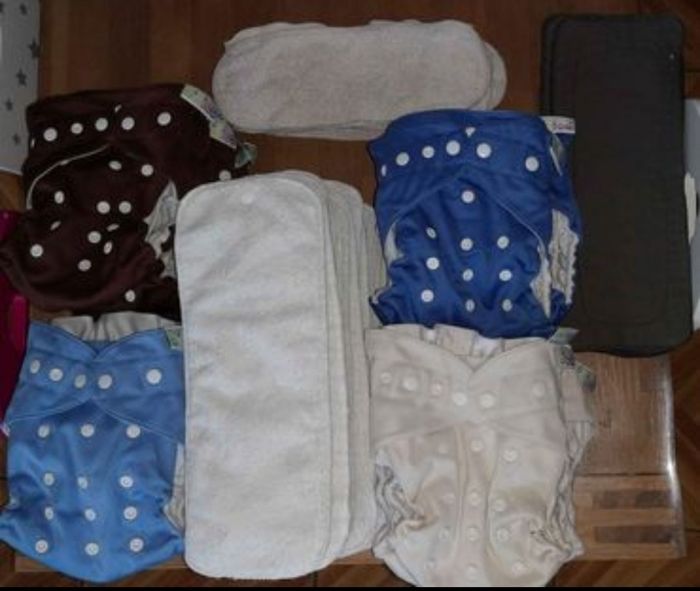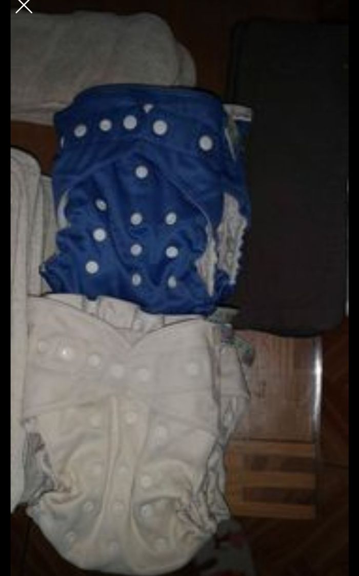 A vendre 20 couches lavables de la marque B'bies, réglables grâce aux nombreuses pressions. 5 couches de couleur bleue ciel 5 couches de couleur marron 5 couches de couleur blanche 5 couches de couleur bleue foncée 27 inserts de la marque B'bies blancs 5 inserts noirs 9 inserts plus petits blancs Soit 7,5€ la couche.