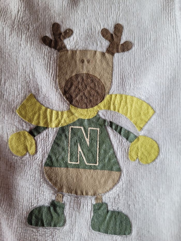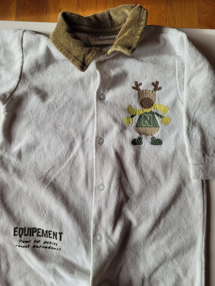 Pyjama chaud Ouverture pressions sur le devant Bras du cerf un peu décollé mais reste en très bon état Taille 12 mois Marque tout simplement