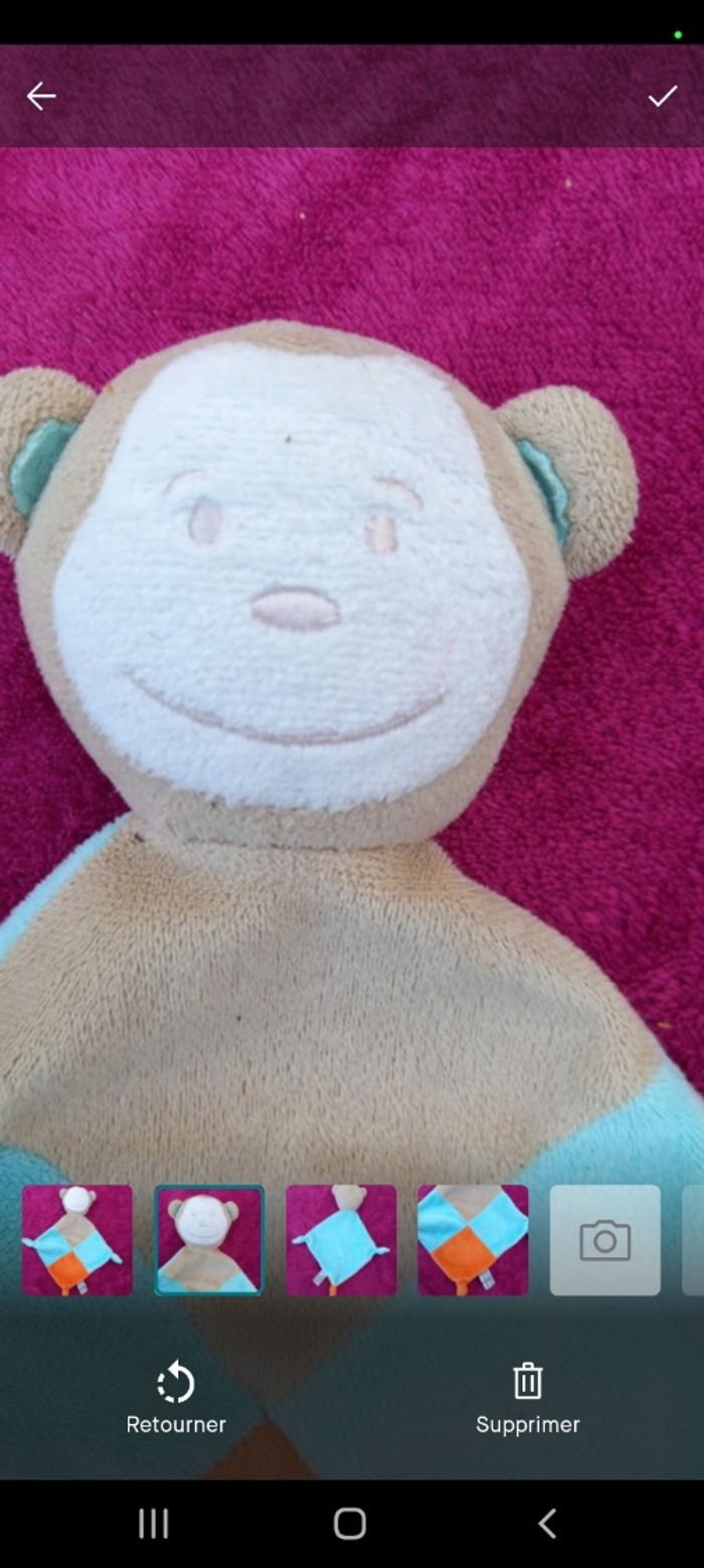 Doudou singe avec nœuds dans les coins - photo numéro 4