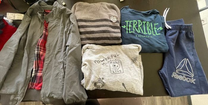 Lot 12 ans comprenant 1 pantalon de survêtement 1 blouson mi saison 3 pulls 4 t-shirt à manches courtes 6 t-shirt à manches longues