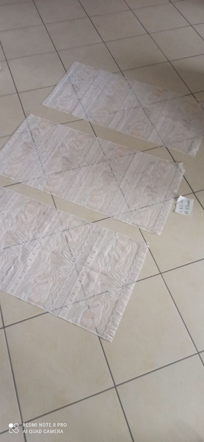 Vends 3 rideaux cygne l 45 cm h 95 cm