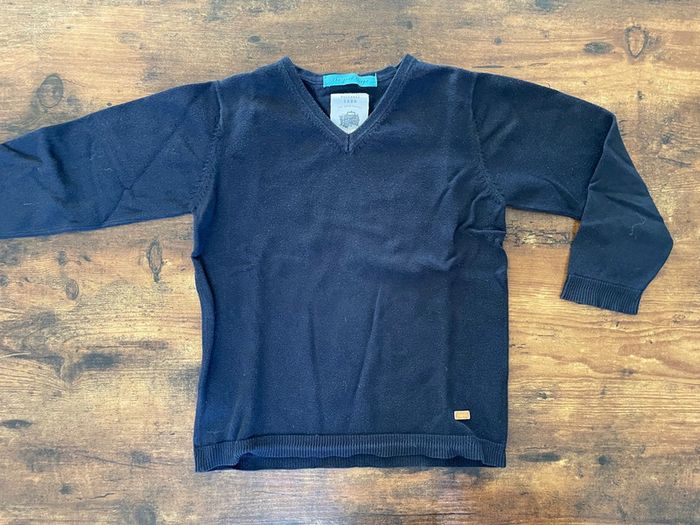 Pull en laine file bleu avec col V Excellent état Taille 5 ans