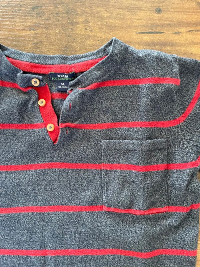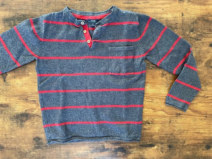 Sweat en laine file à rayures grises et rouges Excellent état Taille 5 ans mais correspond plutôt à 4 ans