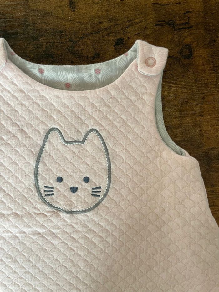 Robe épaisse rose avec motif chat réversible Neuve, jamais portée Taille 6 mois