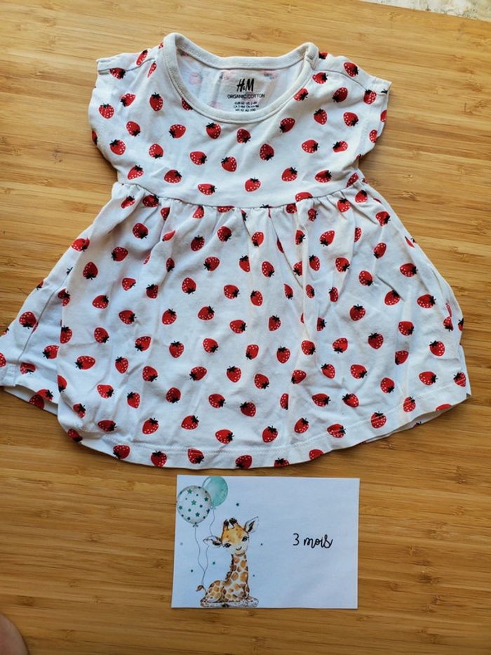 Robe été motifs fraise Couleur : blanc et rouge Marque : h&m Taille : 3 mois État : Très bon état Tous mes articles en 3 mois #caellya25fille3 mois 🏡 Maison non fumeur. 🐈Présence d'animaux à la maison. Je suis toujours vigilante mais l'erreur est humaine☺ 🛍N'hésitez pas à faire des lots pour bénéficier des réductions automatiques. Frais de ports au plus juste.
