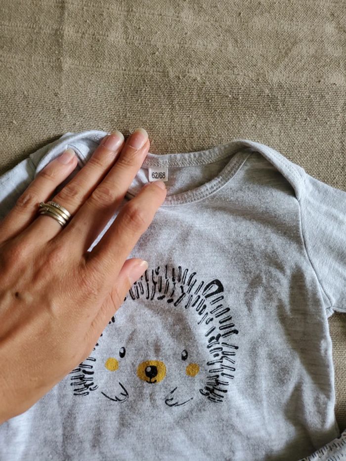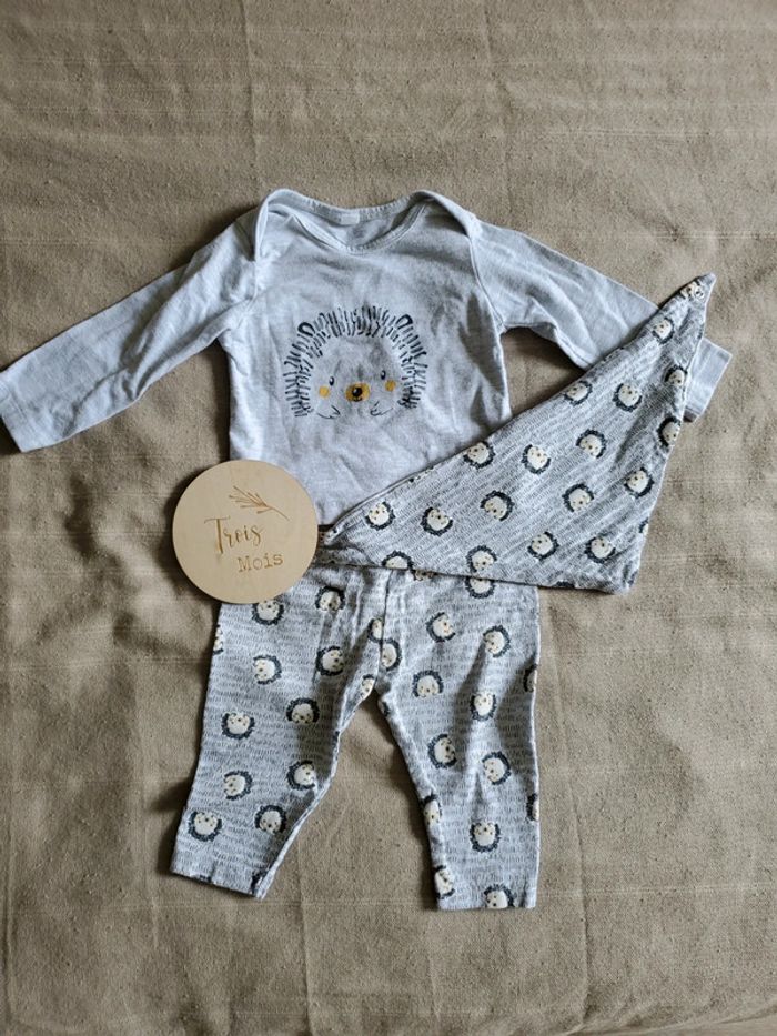 Lot de 3 pièces : t-shirt mancheslongues, legging et bandana. Motif hérisson. Marque : inconnu (c'était un cadeau) État : Très bon état (porté 1 fois) Taille : 3 mois Tous mes articles en 3 mois #caellya25fille3 mois #caellya25garcon3mois 🏡 Maison non fumeur. 🐈Présence d'animaux à la maison. Je suis toujours vigilante mais l'erreur est humaine☺ 🛍N'hésitez pas à faire des lots pour bénéficier des réductions automatiques. Frais de ports au plus juste.