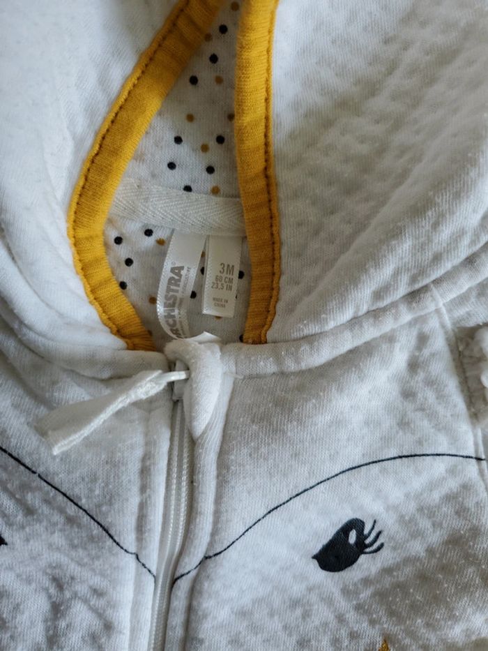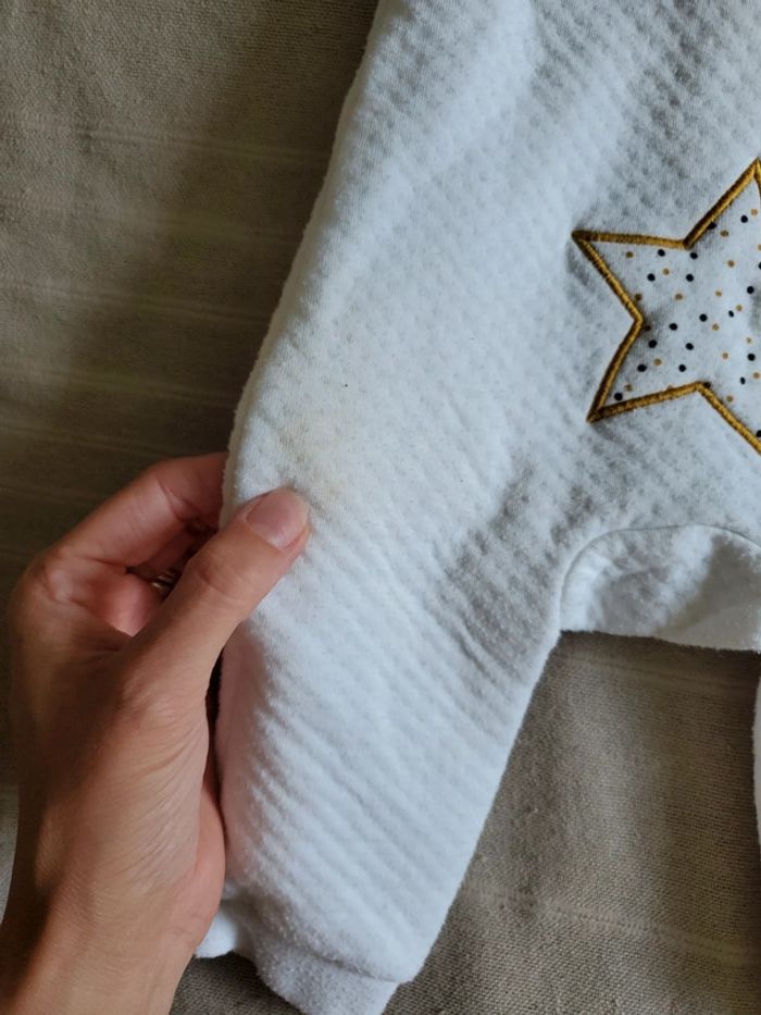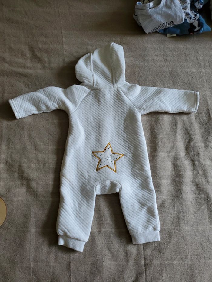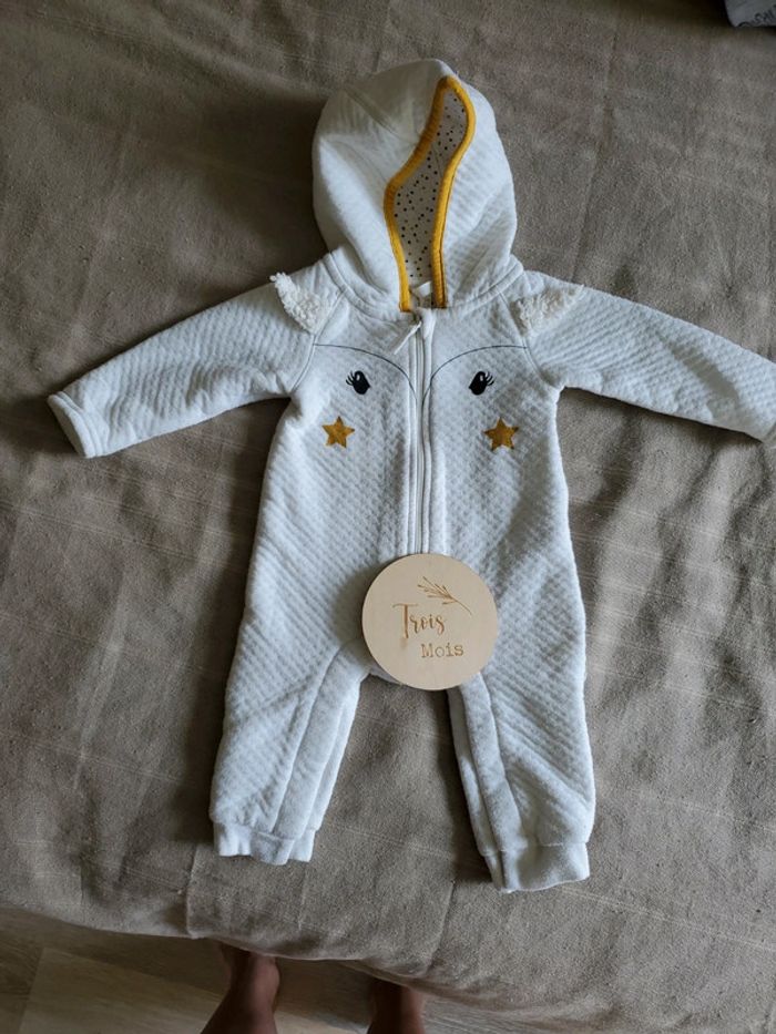 Combinaison blanche qui s'ouvre complètement. Avec capuche.