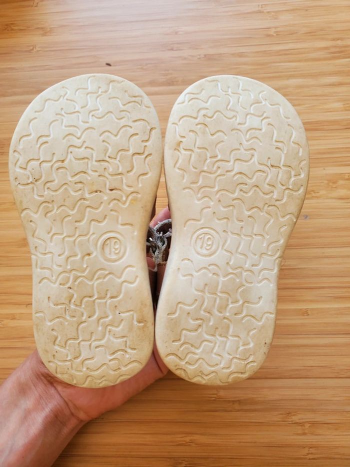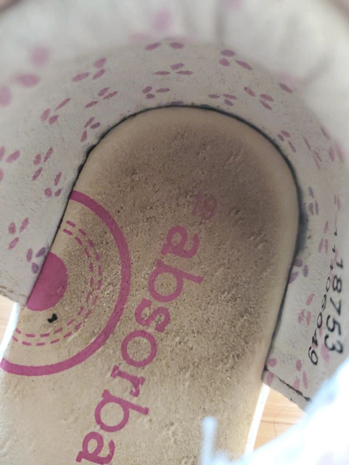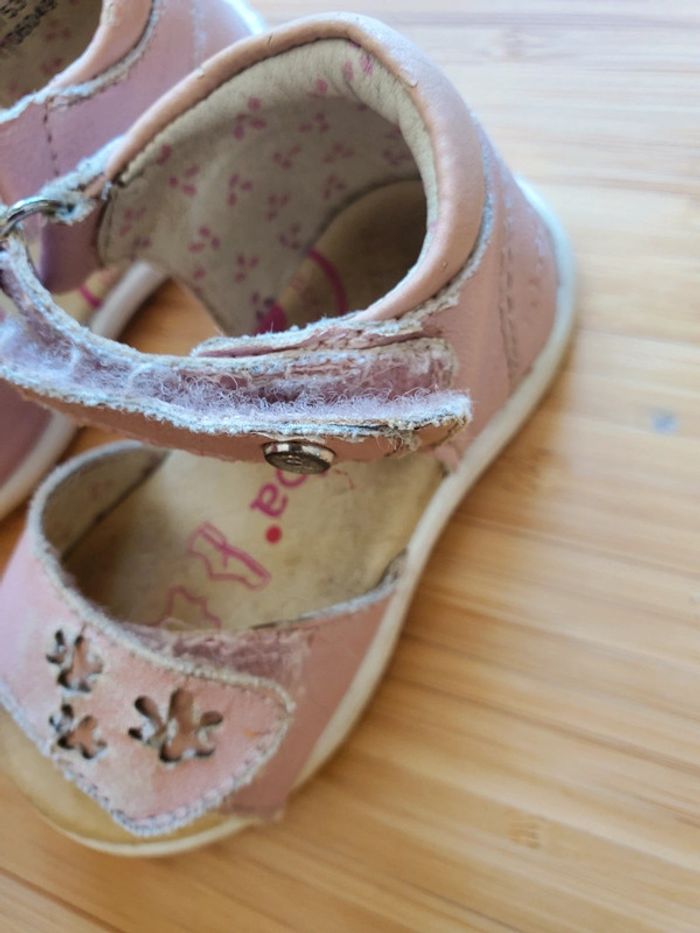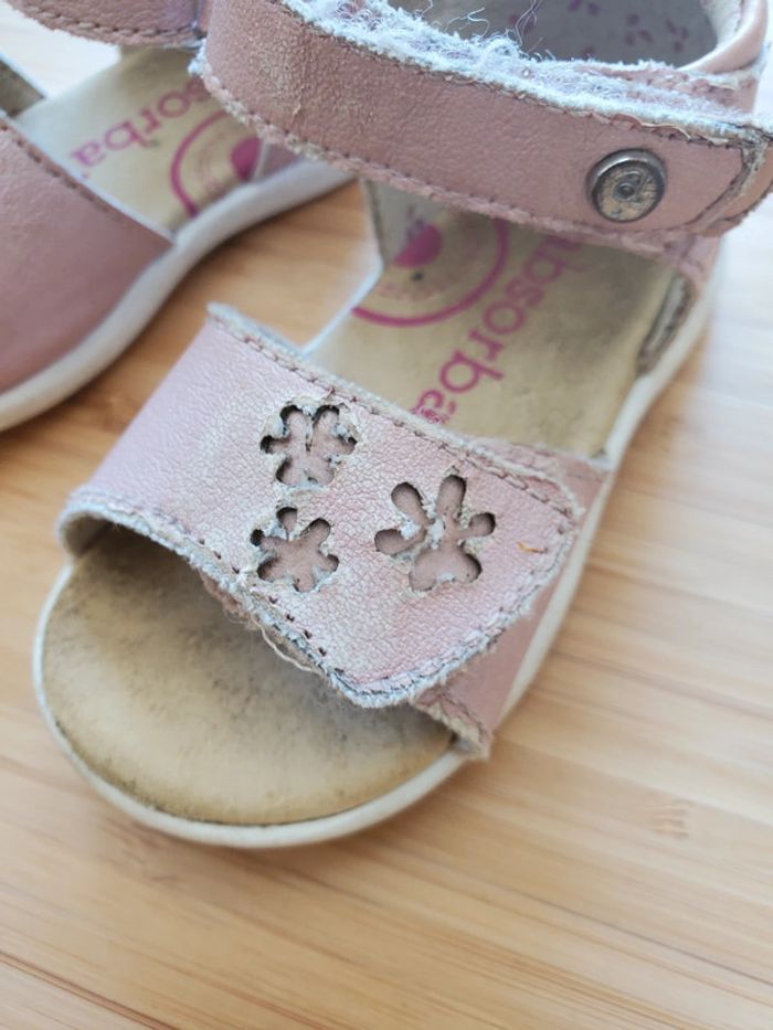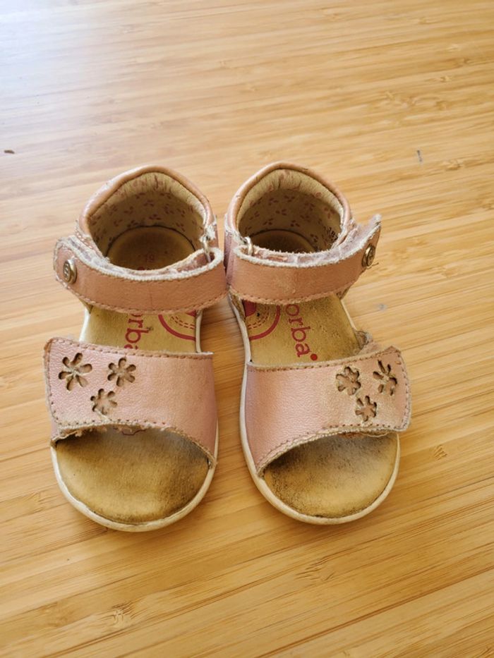 Sandales marque absorba. Pointure 19. S'ouvre totalement grâce à des scratchs. Parfait pour l'autonomie. État satisfaisant. Mais peuvent encore servir.