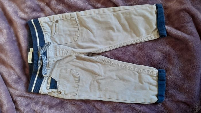 Pantalon denim okaidi 18 mois gris clair, ceinture élastique, assez confortable pour du jeans .
