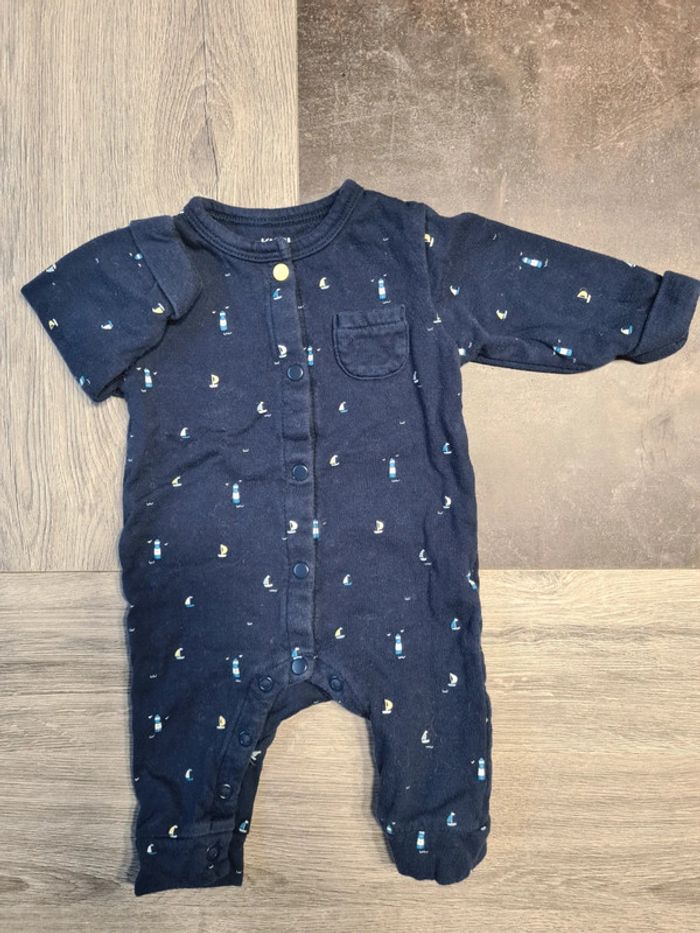 Combinaison bleu foncé avec ouverture sur le devant et à l'entrejambe de chez Kiabi en taille 3mois (56-62cm)