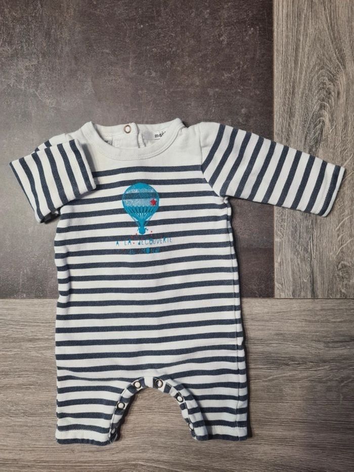 Vend Combinaison rayée de chez Marèse ouverture par pression dans le dos et à l'entrejambe en taille 1mois (54cm)