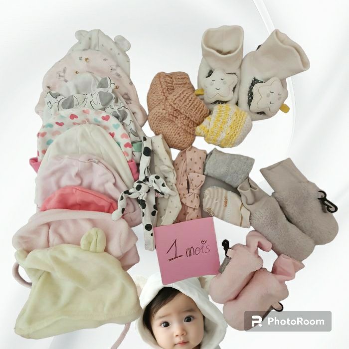 Lot 1 mois avec bonnet, gants, ect..