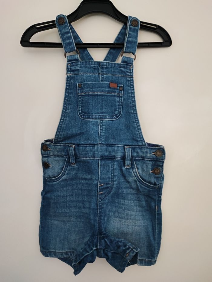 Superbe salopette short bébé fille En jean stretch Bouton pression sur le côté Bretelles réglables Taille 80 cm 9/12 mois