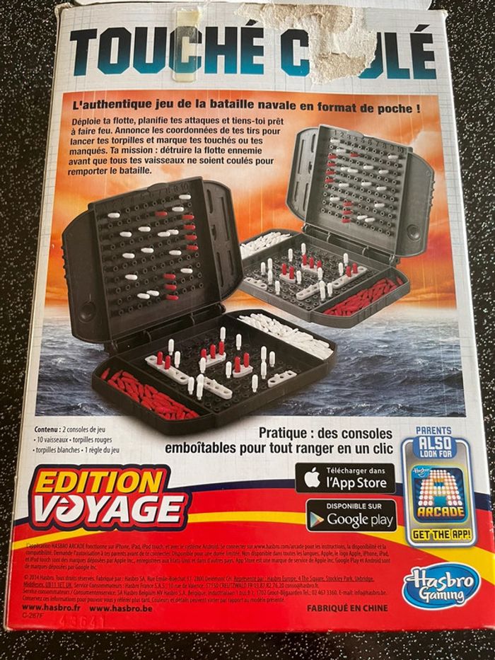 Jeu touché coulé , édition voyage, hasbro gaming, complet, boîte un peu abîmée , voir photos