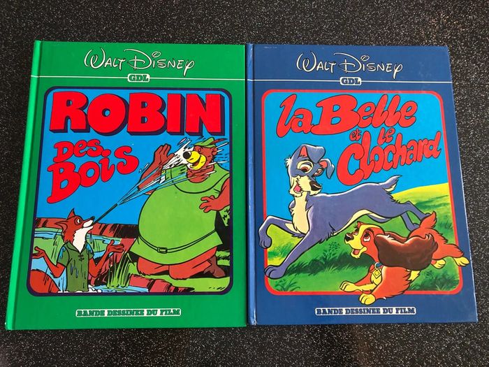 2 BD Disney de 1974 et 1976, La belle et le clochard Robin des bois Traces d’usure , voir photos