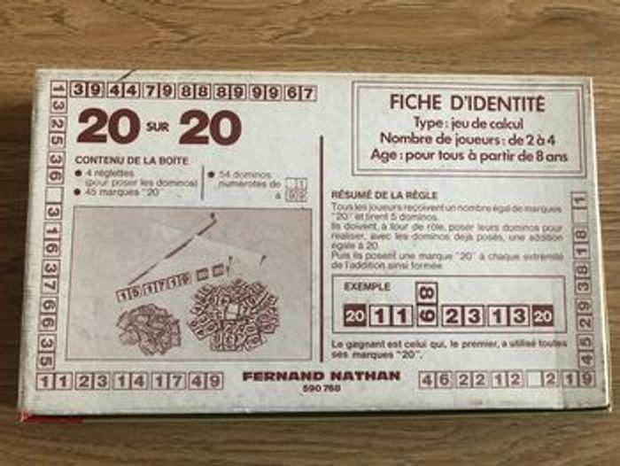 Jeu 20 sur 20 de Nathan Bon état vu son âge (1978) Il manque une réglette sur 4 et 2 dominos sur 54 Voir photos