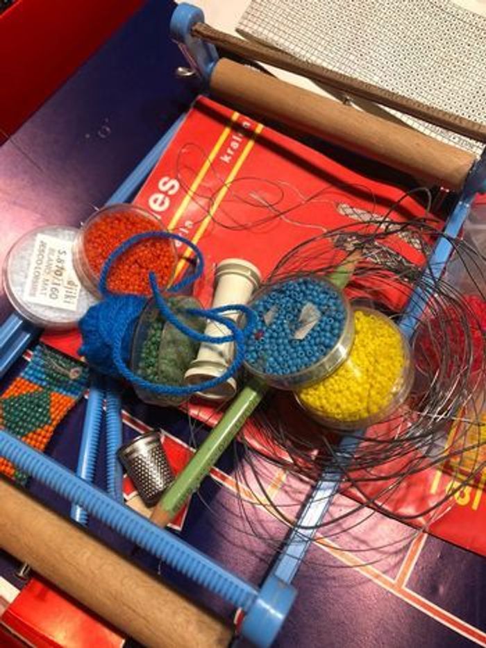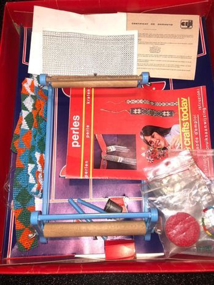 Métier à tisser perles, 1971, Hasbro , compagnie du jouet, made in france, rare, un coin de la boîte est bien abîmé , le métier à tisser a été réparé. Voir photos