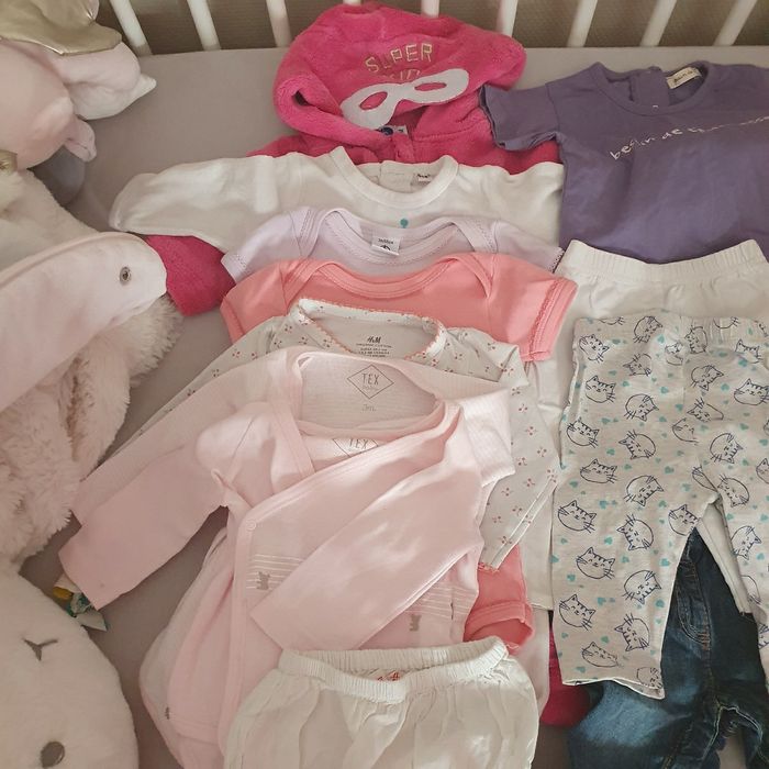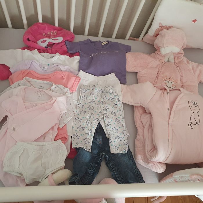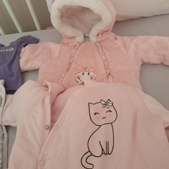 2 combinaison pour l'hiver, 2 pyjamas , quelque bodies 1 tee shirt et 3 pantalons.