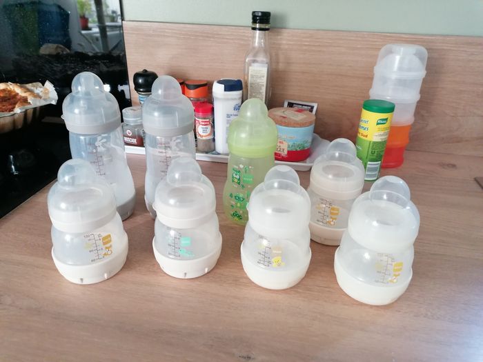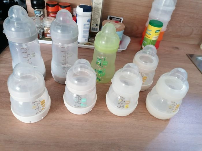 Lot de biberons mam sans tétines 3 grands et 5 petits.