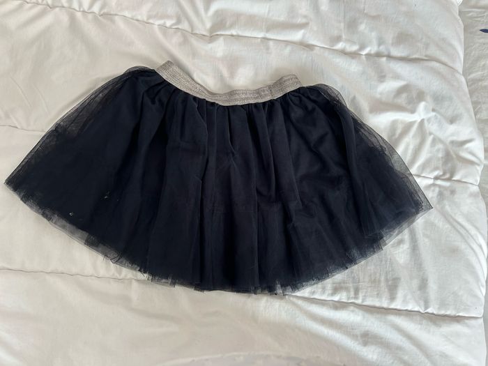 Jupe tutu bleu marine avec voilage. Ceinture élastique. Taille : 7 ans.