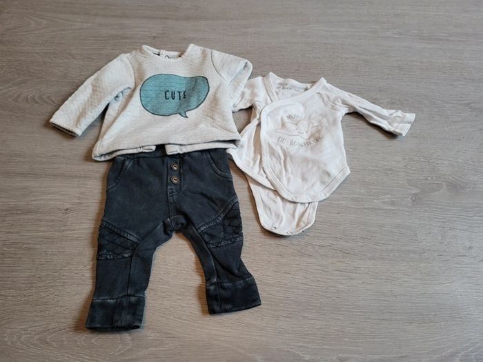 Ensemble body, pantalon et gilet avec fermeture à pression derrière Taille 1 mois