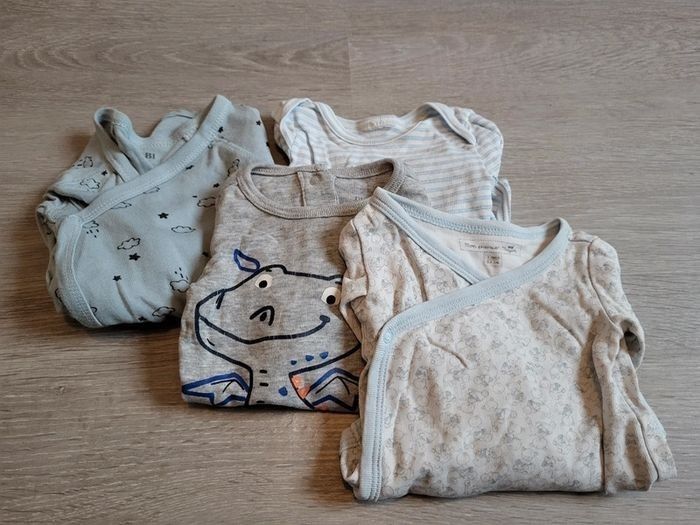 Lot 4 bodies manches longues (divers marques) Taille 1 mois