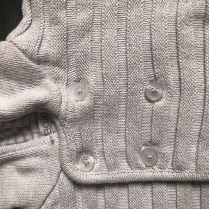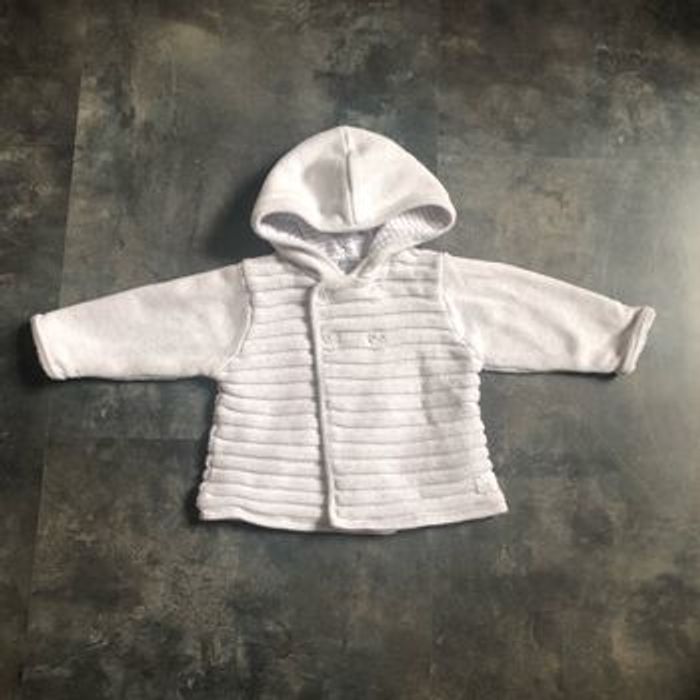 Gilet veste doublé à capuche parfait état 100% coton blanc gris chiné très clair Doublure jersey coton blanc rayé gris Taille 6 mois 68 cm Obaibi