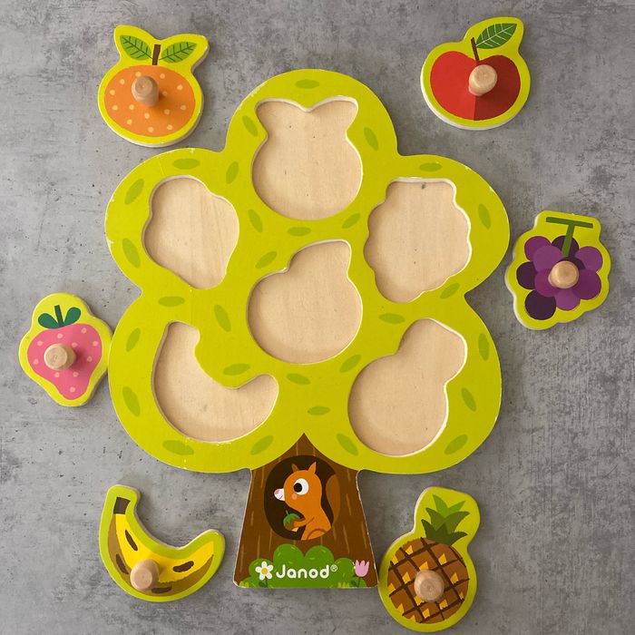 Puzzle en bois 6 pièces de marque Janod. Très bon état. Dimensions : 22x28 cm